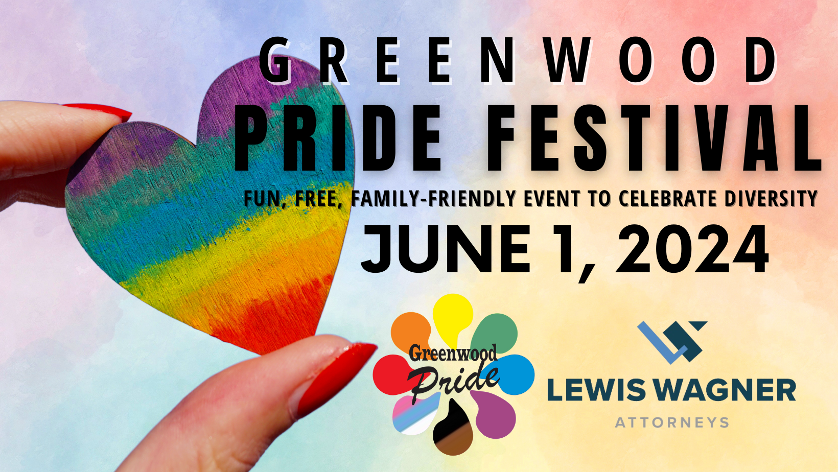 The Greenwood Pride ‘24 Festival will take place on June 1, 2024 from 12pm - 6pm at Woodmen Park by the Greenwood High School.